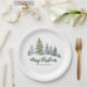 Celebrate the season in style with these rustic Christmas paper plates featuring a watercolor forest of evergreen trees. The festive design blends rustic charm with modern typography, making it perfect for your Christmas celebration. Personalise the paper plate with your own name.