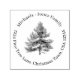 This design features a Christmas return address self inking stamp, with a rustic pine tree, a simple circle typography, with family name address, an elegant round curved text, a sophisticated classy, classic minimal, winter woodland, forest, modern style.