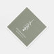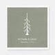 Casual sage green wedding paper napkin, with a simple pine tree and customisable typography design. A rustic addition to your wedding reception party supplies.