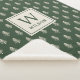Custom-designed Christmas blanket featuring rustic hand drawn style forest green and beige pine trees design with personalised initial and name.