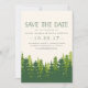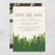 Our rustic pine tree wedding save the date cards have a cool Northwestern vibe, with a lush forest of pine trees in rich shades of green, ranging from light pear and grass green to deep hunter. Perfect for weddings in forest, woodland or mountain settings, these save the dates feature a warm ivory background with your wedding details in hunter green and medium grey typography. Custom text templates provide space for your names, wedding date, location and wedding website. Add an engagement photo to the back of the card if desired.
