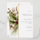 This design features a delicate sprig of vibrant green pine, eucalyptus, and crimson red berries that gracefully adorns the invitation, symbolising the beauty and resilience of nature. The touch of real gold foil adds a touch of luxury, glistening like frost-kissed branches on a crisp winter morning. This design is part of the Rustic Pine Winter Bouquet wedding suite created by Simply Farmhouse Press.