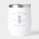 These cool personalised wine tumblers feature your family name in turquoise blue, with your year established and a pineapple illustration. Your city or town name in script lettering completes the design.