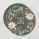 Traditional design with a modern twist. Beautiful rustic botanical frame with pinecones and white flowers is this traditional, and the round card is the modern! Upload your engagement photo for the back, along with the date and names customisation.