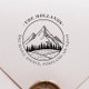 Add a touch of nature to your mail with this rustic-inspired round return address stamp. Classic circular typography frames a simple hand-drawn mountain scene, featuring a foreground hill, tall pine trees, and distant peaks. Minimalist, elegant, and timeless, it’s perfect for envelopes, stationery, packaging, or small business branding, bringing a charming woodland feel to every correspondence.