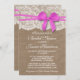 Rustic Pink Bow, Burlap & Lace Bridal Shower Invitation