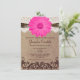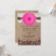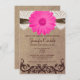 I highly recommend the LINEN paper type. | Here's a unique bridal shower invitation for a country bride. These feature a rustic printed design with printed lace and twine with a hot pink gerber daisy at the top and a flourish vine scroll print at the bottom. These are perfect for brides who will be having a country style wedding or will be using pink daisies or pink flowers in their wedding.