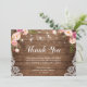 Rustic Pink Floral Lace String Lights Thank You Card.
