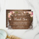 Rustic Pink Floral Lace String Lights Thank You Card.