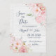 A pretty save the date card for your wedding with rustic country wood pattern and delicate pastel pink roses and peonies with rose gold touches.