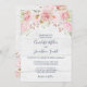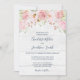 A vintage floral invitation for your spring wedding with elegant blush pink watercolor flowers with pastel greenery, a rustic wood pattern and modern handwritten style text and rose gold details.