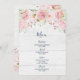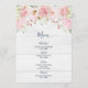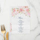 An elegant rustic pink vintage floral menu to compliment your spring or summer wedding with sophisticated bouquets of blush pink watercolor flowers with rose gold details and a country wood pattern.