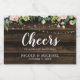 Personalise these rustic floral mini sparkling wine labels for your wedding favours. Design features watercolor greenery and pink flowers with strings lights and a dark barn wood background with a modern script font.
