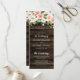 Elegant watercolor flowers and greenery decorate these rustic wedding programs. Design features light blush pink and white flowers with strings lights and a dark barn wood background with a modern script font.