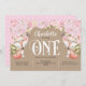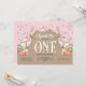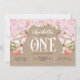 Rustic, Pink Floral, Woodland, Girl 1st Birthday Invitation