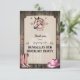 Saddle up and gallop over for a fun horseback riding themed birthday party. A wood plank background suggests the interior of a stable with a panel held on by burlap straps. The cream-coloured panel has a horse watermark. At the top, a horse is peeking through a horseshoe to thank guests for taking part in a fun day with horses. A pair of pink boots and a cowboy hat are placed towards the bottom of the card with western-style ornaments accenting the design. Available with matching products.
