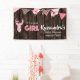 Add a personal touch to your baby shower. Welcome guests with this personalised banner that can be a keepsake for the Mother To Be. It has a dark brown wood background. There's a light pink plaid deer head with antlers and it reads "It's a Girl!" Personalise with name of the Mother To Be. You can customise the font style, colour, and style.