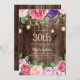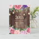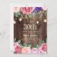 Rustic wood, pink and purple flowers with greenery, and sparkling string lights and lanterns 30th country-style birthday party invitation for women. Contact us for help with customisation or to request matching products.
