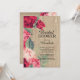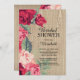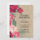 Rustic Cottage Chic flowers bridal shower invitations set on a tan brown wood background. Flip our contemporary red & pink rose floral flowers invite over to view a stunning floral matching back for an extra special touch. Available in our shop in a variety of stylish floral combinations in an assortment of colours.