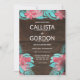 Rustic Pink Teal Floral Wood Barn Wedding Invitation