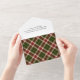 Rustic and charming holiday design featuring gold snowflakes, "Christmas" typography and warm plaid backgrounds and six-photo template with editable text fields.