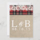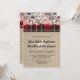 This rustic, outdoorsy wedding invitation features a faux burlap background with an image of lace and flannel plaid along each side. Perfect for a rustic country wedding.