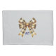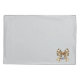 A snug, rustic design featuring a bow in a gold and black plaid pattern, accentuated with a black monogram, creates an elegantly simple pillowcase.