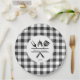 Rustic plaid wedding rehearsal dinner paper plates. Stylish black and white buffalo plaid with modern graphics elevates any rustic barbecue rehearsal dinner. Personalise the plates to give it a custom look with the customisation tool and you will have a wonderfully curated summer rehearsal dinner event. Check out more products from the Rustic Black and White Plaid Collection.