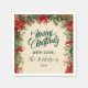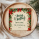 A festive Christmas party design framed with classic red poinsettias, pine branches, and winter greenery. The rustic vintage style captures the warmth and cosiness of the holiday season, perfect for a traditional Christmas celebration.