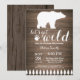 Rustic Polar Bear Baby Shower Invitation. Winter Baby Shower invitation. Boy or Girl Baby Shower Invitation. Let's get wild. Winter Holiday Baby Shower Invite. Rustic Wood Background. Country Vintage Retro Barn. For further customisation, please click the "Customise it" button and use our design tool to modify this template.