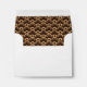 This envelope, with a large cream and white star burst on the outside, has a customisable address printed on the front. This envelope is intended to be used as a return envelope for RSVPs - you can clear the front address if you'd like to use it for another purpose. The inside lining is a dark brown and cream scallop pattern.