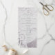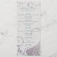 Swirls billow and curl about a floral purple damask pattern. A French love poem is faintly inscribed in the silver background, providing the perfect accompaniment to the program wording in script and engraving style fonts.