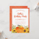 Celebrate a fall birthday in style with this rustic pumpkin invitation featuring watercolor pumpkins, bright sunflowers, and autumn greenery. Perfect for harvest birthdays this customisable design sets a warm seasonal tone for your celebration.