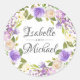 Rustic Purple and Ivory White Rose Floral Wedding Classic Round Sticker
