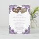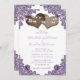 Rustic Purple Floral Lace Burlap Hearts Wedding Invitation