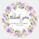 Beautiful purple watercolor rose wreath. Lots of greenery leaves and vines to give it a modern rustic vibe. Thank you is written in a large flowing script font. The wedding couple names and wedding date are below in a classic serif font. Very easy to customise.