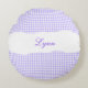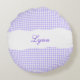 Rustic Purple Gingham Personalized Name Round Cushion