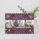 Rustic Purple Plaid Snowflake 3 Photo Collage Holiday Card