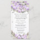 A beautiful template for the DIY wedding. A lush border of purple roses along with white hydrangea flowers and sage green leaves line the top and bottom of this wedding program. You can use it to describe your own wedding ceremony and wedding party.