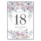 A lush top border of blush purple roses, lilacs and white daisies and sage green leaves and vines creates an elegant frame for this table number card. A blush purple rose spray defines the bottom. The table number is written in a large dark grey font. The wedding couple's names and wedding date are below. Very easy to customise. This table number sign is part of the Blush Violet collection. It contains many other signs and accessories that you can use to personalise your wedding ceremony and reception. You should see a link to it on this page. If you don't see the link or need help with a template, please contact me.