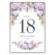 A lush top border of purple roses and sage green leaves and vines creates an elegant frame for this table number card. A purple rose spray defines the bottom. The table number is written in a large dark grey font. The wedding couple's names and wedding date are below. Very easy to customise. This table number sign is part of the Violette collection. It contains many other signs and accessories that you can use to personalise your wedding ceremony and reception. You should see a link to it on this page. If you don't see the link or need help with a template, please contact me.
