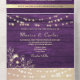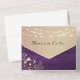 The rich purple wood background and twinkling string lights create a romantic ambiance, making it perfect for rustic, barn, or outdoor weddings. Customise with your wedding details and RSVP information to create a memorable first impression for your guests.