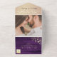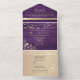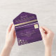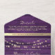 Set the tone for your special day with this rustic purple wood and string lights wedding invitation. Featuring faux gold floral accents and a customisable photo on the back, this all-in-one design offers a cohesive and elegant look for your celebration.