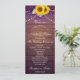 This rustic purple and yellow sunflower floral country barn wedding program is perfect for your special day. The design features a floral bouquet of sunflowers, lavender, daisies and irises surrounded by string lights on a rustic barn wood background. Elegant and delicate fonts grace the program. This design theme is perfect for your garden, rustic, elegant, vintage, country or destination wedding. View the complete collection on our page for matching items that fulfil all of your wedding suite needs.