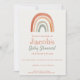 Invite loved ones with this modern baby shower invitation, highlighted by a hand painted rustic rainbow in warm, earthy tones. The playful combination of textured serif and contemporary script fonts adds a whimsical touch, while the clean, minimalist layout keeps things fresh and inviting. Designed for a relaxed, gender neutral boho celebration, this card features a harmonious palette of rust, peach, beige, and sage green perfect for creating a cosy, stylish atmosphere for your special day.