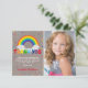 Rustic childrens birthday party thank you card with a magical rainbow, a photo of the birthday girl or boy, scattered colourful stars and a thank you message which can be personalised for all those who helped celebrate your special day.