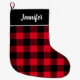 Rustic Red and Black Buffalo Check Monogram Large Christmas Stocking