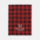 Rustic Red and Black Buffalo Check Monogram Name Fleece Blanket