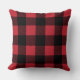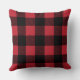 Stylish throw pillow design features a rustic modern farmhouse red and black buffalo plaid pattern.