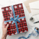 Holiday cheer! Customisable wrapping paper - add names / family / group / pets - rustic up north red and black plaid with snowflake detail